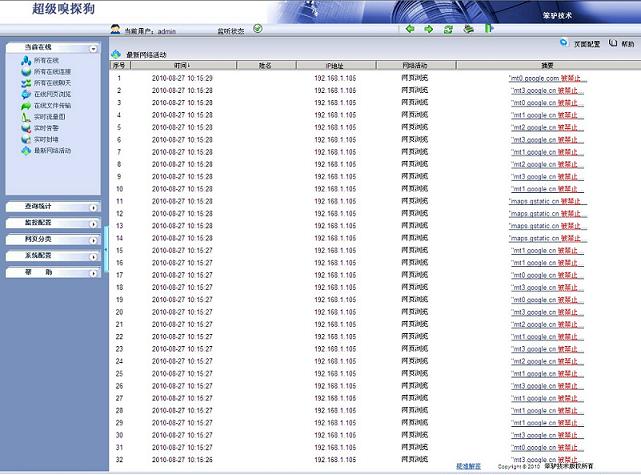 5.進(jìn)入“當(dāng)前在線”-->“最新網(wǎng)絡(luò)活動”,我們能看到有很多的被禁止的訪問,這些都是和谷歌地圖相關(guān)的網(wǎng)址: