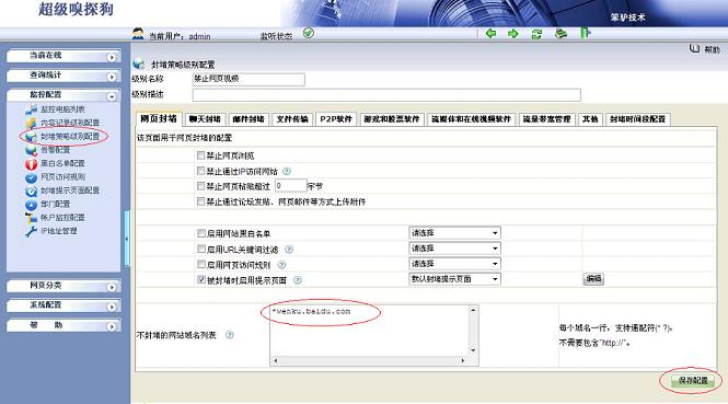 為此,超級(jí)嗅探狗的“封堵策略配置”中提供了一個(gè)“不封堵的網(wǎng)站域名列表”功能,此列表中的網(wǎng)站不受任何其他策略的影響,也不會(huì)被禁止掉。