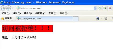 用192.168.2.0網(wǎng)段的機(jī)器測(cè)試一下,成功封堵了“www.qq.com”的網(wǎng)頁訪問