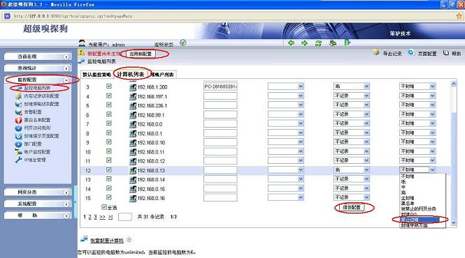(3)在“監控配置-- >監控電腦列表-- >計算機列表”中應用封堵規則,如下圖所示: