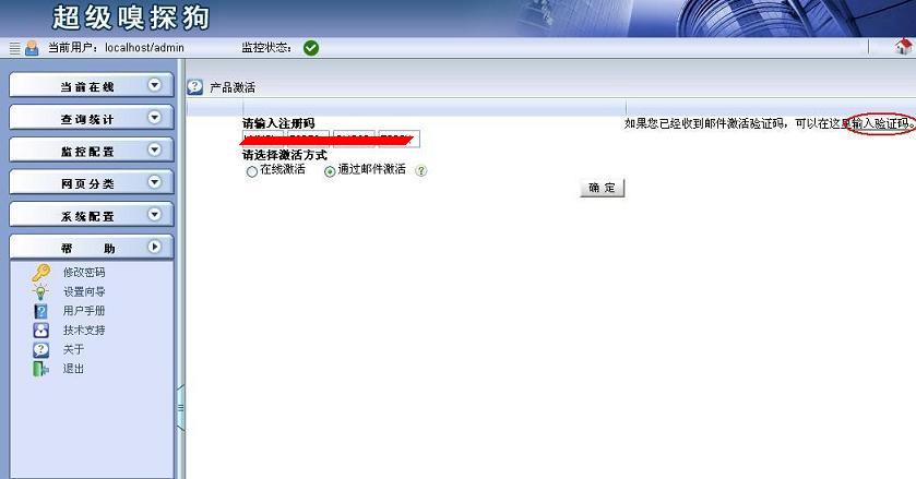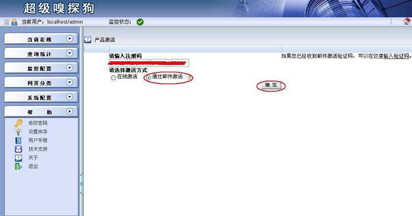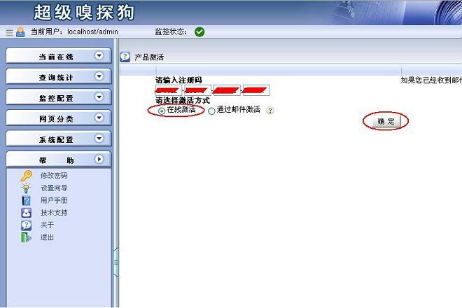 超級嗅探狗支持兩種激活方式:在線激活、郵件激活。