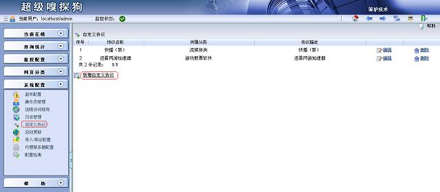進入超級嗅探狗,進入系統配置 -> 自定義協議 -> 新增自定義協議,創建一個新的自定義協議。2.輸入相關參數并保存配置