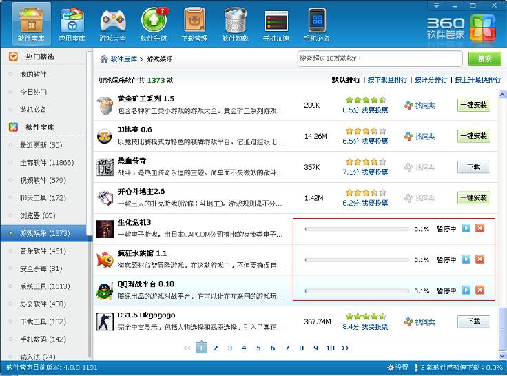 4. 這時,該電腦使用360軟件管家下載安裝軟件就會被自動禁止(軟件下載被自動暫停)。