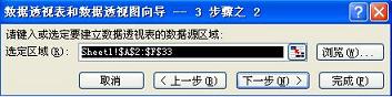 步驟2:單擊“下一步”,進入“選定要建立數據透視表的數據源區域”界面(選擇區域從第二行到最后一行)。具體如下圖所示: