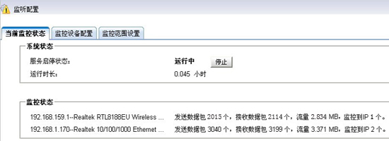 2). 在“當(dāng)前監(jiān)控狀態(tài)”中可以看到兩個局域網(wǎng)的監(jiān)控狀態(tài)