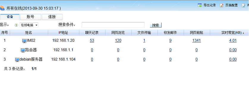 我們重新定義了“所有在線”頁面,使您可以根據“設備”“賬號”“鏈接”進行切換查看。局域網網絡狀況一目了然。