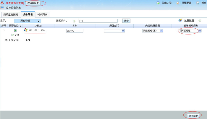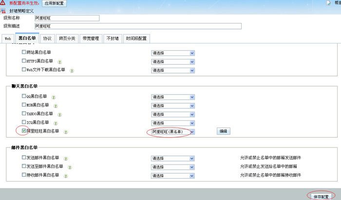 1.在“封堵級(jí)別策略“中新增一個(gè)“阿里旺旺”策略
