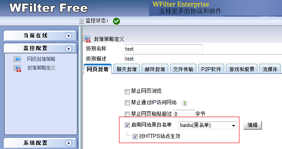 WFilter的系列產品(超級嗅探狗和WFilter Free)都可以支持對HTTPS站點設置“黑白名單”。