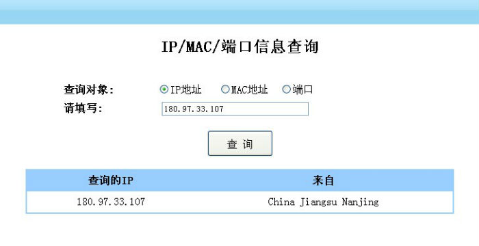 例如輸入180.97.33.107(百度),返回的信息如下:
