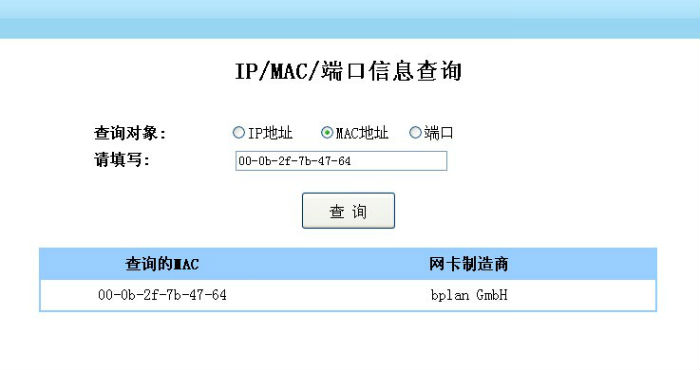 例如輸入00-0B-2F-7B-47-64,返回的信息如下: