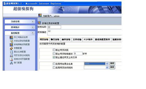 如果只是要禁止網頁上傳,只需選擇“封堵級別策略配置”,然后選擇“網頁封堵”