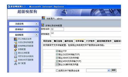 如果要禁止聊天軟件和FTP上傳文件,只需選擇“文件傳輸”標簽,在禁止選項前打勾即可