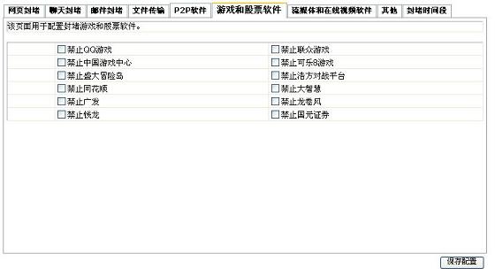 超級嗅探狗支持聊天封堵、郵件封堵、P2P軟件、游戲和股票軟件、流媒體和在線視頻軟件等封堵,這樣便可以約束員工的上網(wǎng)行為,如圖: