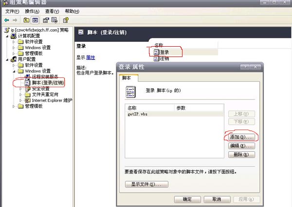 如圖1.5所示,在組策略編輯器中,設置登錄腳本。