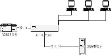 如圖所示,只需要把路由器端口(端口1)做為鏡像的源端口, 超級(jí)嗅探狗(端口16)做為目的端口即可。