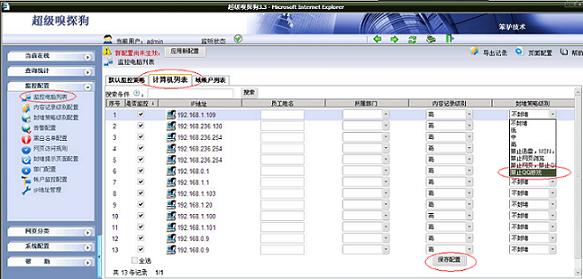 2. 在“監(jiān)控配置--> 監(jiān)控電腦列表--> 計(jì)算機(jī)列表”中應(yīng)用封堵規(guī)則,如下圖所示: