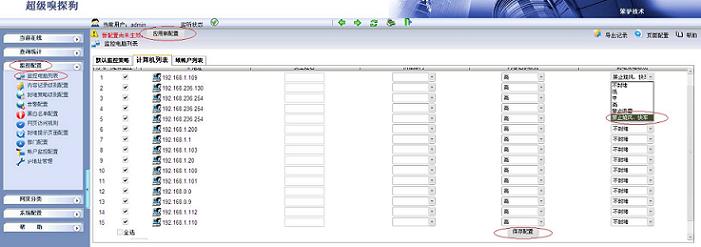 3.在“監(jiān)控配置--> 監(jiān)控電腦列表--> 計算機列表”中應(yīng)用封堵規(guī)則,如下圖所示: