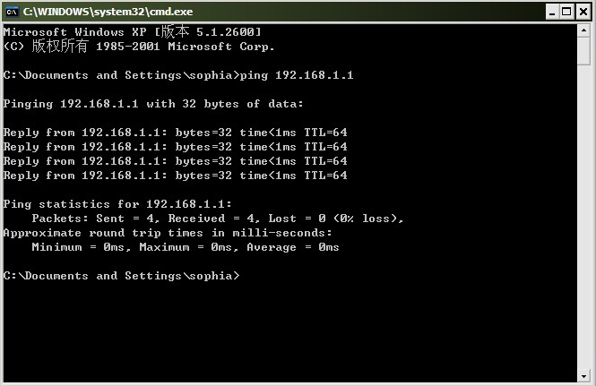 2.利用ping命令,ping下網關以刷新ARP表(本例中網關為192.168.1.1)。