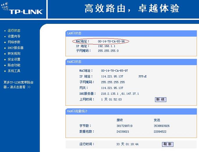 4.然后打開路由器,查看網關的MAC地址。