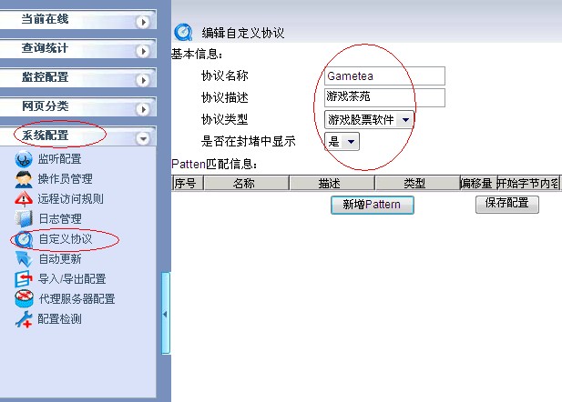 1.2 點擊“新增Pattern”,填寫Patten匹配信息后點擊“保存配置”,如下圖所示: