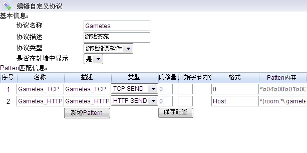 1.1 在“系統配置->自定義協議”中點擊“ 新增自定義協議”增加一個自定義協議,命名為Gametea,協議類型選擇“游戲股票軟件”,如下圖所示: