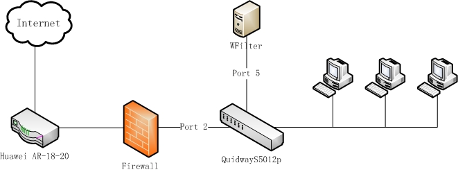 An goverment network topology as below: using Huawei AR-18-20 as the router, connectd with a hardware firewall. Huawei Quidway S5012P acts as the core switch. The network topology diagram: