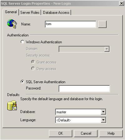 As in Figure 4.2, open the "Security" folder, right click "Logins"->"New Login..". Here you can set the login name and password.
