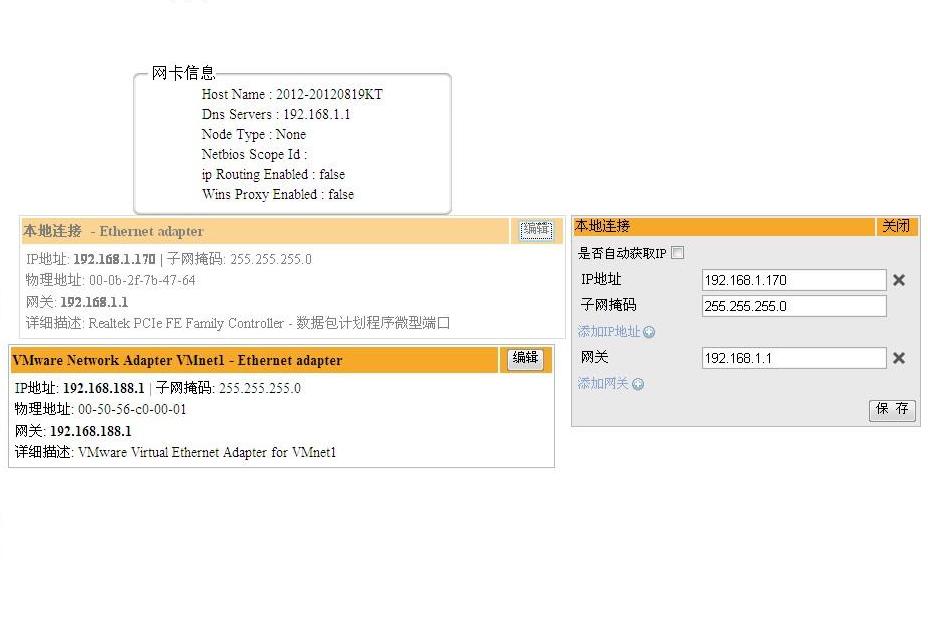 該插件可以用來修改IP、子網掩碼和網關等信息 |
