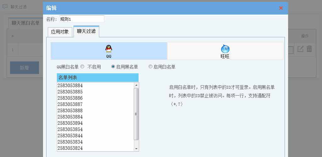 聊天過(guò)濾 - 旺旺黑名單